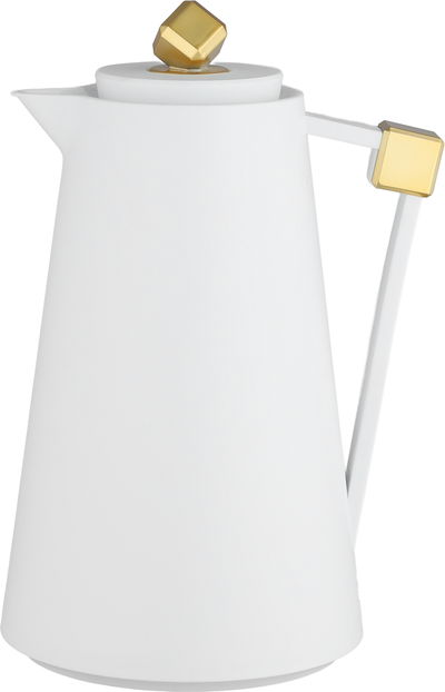 ترمس الماسة بلاستيك افريست، 1 لتر، حافظة داخلية زجاج، ضغاط - أبيض ذهبي