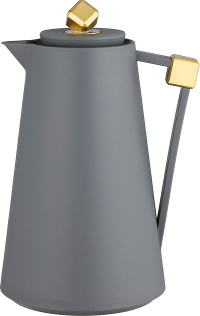 ترمس الماسة بلاستيك افريست، 1 لتر، حافظة داخلية زجاج، ضغاط - رمادي غامق ذهبي