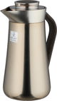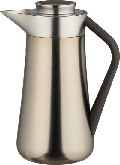 ترمس الهدا ستانلس استيل السيف غاليري، 1 لتر، يد خشبي غامق، ضغاط - فضي مطفي