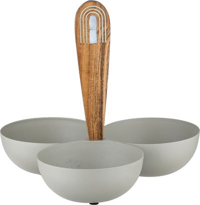 شيالة تقديم ستانلس استيل السيف غاليري، 22.5×24×24 سم، مسكة يد خشب، 3 مواضع، دائري - رمادي خشبي