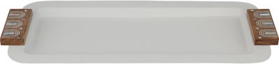 طوفرية تقديم ستانلس استيل السيف غاليري، 43x20x2 سم، مسكة يد خشب، مستطيل - اوف وايت خشبي