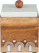 علبة تخزين خشب السيف غاليري، 10x10x10 سم، غطاء استيل، مربع - اوف وايت خشبي