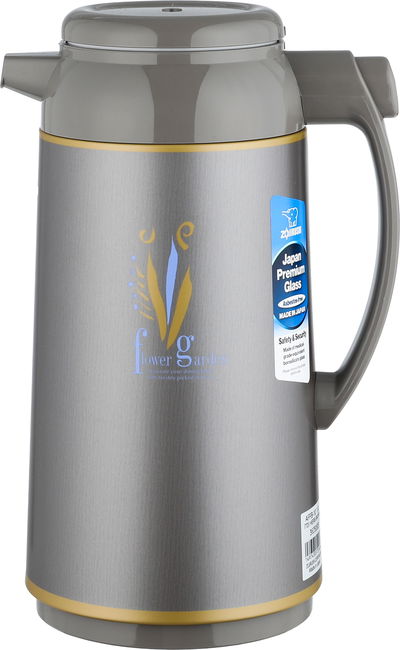 ترمس أبو فيل زوجرشي، 1 لتر، حافظة داخلية زجاج، مفتاح تأمين - رصاصي ذهبي