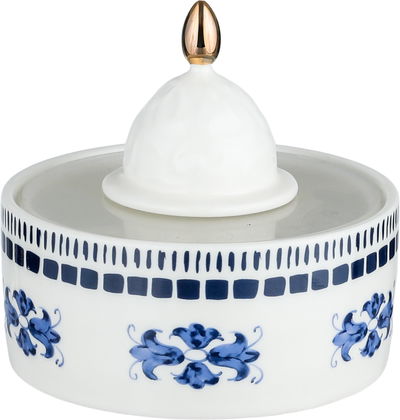 علبة حلا بورسلان السيف غاليري، مشجر، غطاء اكريلك، 11.5x11.5x7 سم - ابيض ازرق