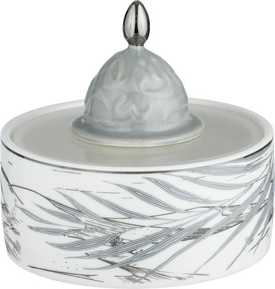 علبة حلا بورسلان السيف غاليري، غطاء اكريلك، مشجر 11.5x11.5x7 سم - ابيض رمادي