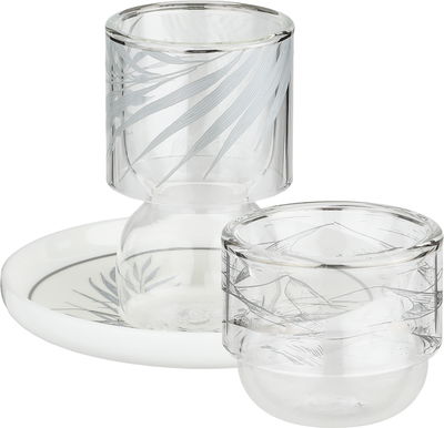 طقم تقديم بيالات شاي زجاج وفناجين قهوة مع صحون بورسلان السيف غاليري، مشجر فضي، 18 قطعة - ابيض شفاف