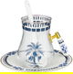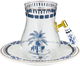 طقم تقديم بيالات شاي زجاج وفناجين قهوة مع صحون بورسلان السيف غاليري، 25 قطعة، سكرية، مشجر - ابيض شفاف