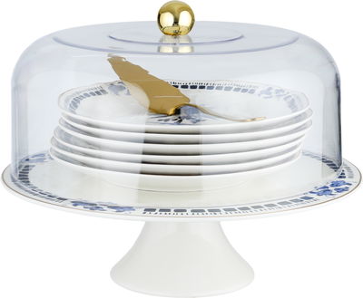 طقم ستاند كيك بورسلان السيف غاليري، 9 قطع، مشجر ازرق، قاعدة - ابيض شفاف