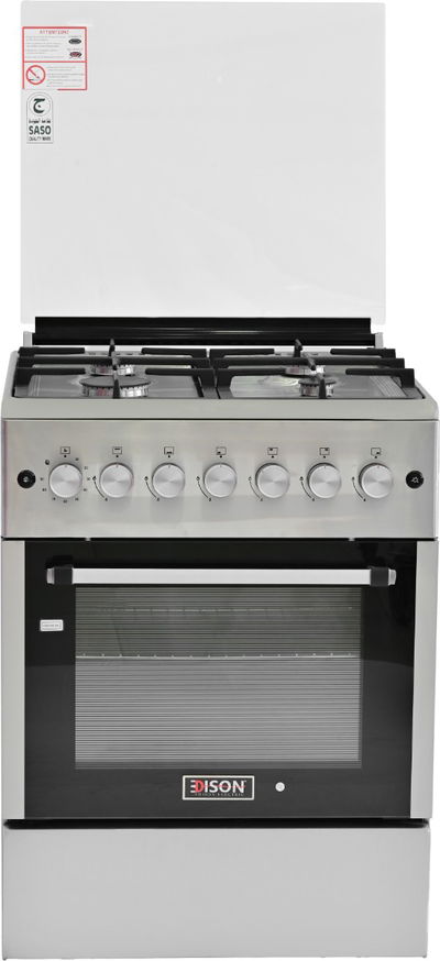 فرن غاز قائم إديسون، 60 ×60 سم، 4 شعلات، 6 مفاتيح تحكم، EDGS-FRR-204 - فضي أسود