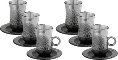 طقم بيالات زجاج أمبير، 120 مل، صحون، قاعدة أسود، 12 قطعة - رمادي شفاف