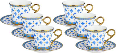 طقم فناجين قهوة تركي مع صحون بورسلان السيف غاليري، 12 قطعة - متعدد الالوان