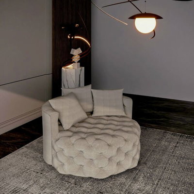 كرسي مودرن خشب سويدي، 120x120x70 سم، قماش مخمل - بيج