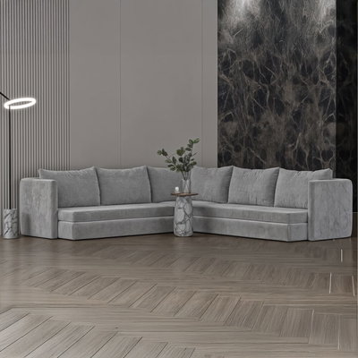 كنبة شكل L مودرن خشب سويدي،300×300 سم، قماش شانيل - رمادي