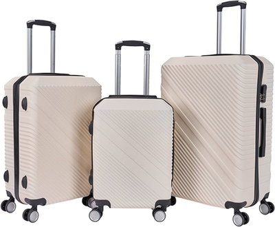 طقم شنط سفر ABS ليمرا، 3 مقاسات، 4 عجلات، زاويه 360 درجة، LMA-1534 - بيج