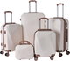 طقم شنط سفر ABS ليمرا، 5 مقاسات، 4 عجلات، زاويه 360 درجة، LMA-1131 - بيج ذهبي