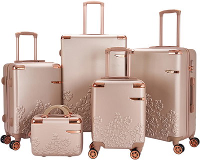 طقم شنط سفر ABS ليمرا، 5 مقاسات، 4 عجلات، زاويه 360 درجة، LMA-16080 - ذهبي