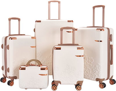 طقم شنط سفر ABS ليمرا، 5 مقاسات، 4 عجلات، زاويه 360 درجة، LMA-16150 - بيج ذهبي