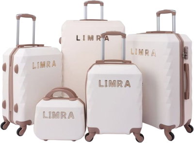 طقم شنط سفر ABS ليمرا، 5 مقاسات، 4 عجلات، زاويه 360 درجة، LMA-1151 - بيج ذهبي