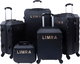 طقم شنط سفر ABS ليمرا، 5 مقاسات، 4 عجلات، زاويه 360 درجة، LMA-1154 - أسود