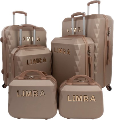 طقم شنط سفر ABS ليمرا، 6 مقاسات، 4 عجلات، زاويه 360 درجة، LMA-10340 - ذهبي
