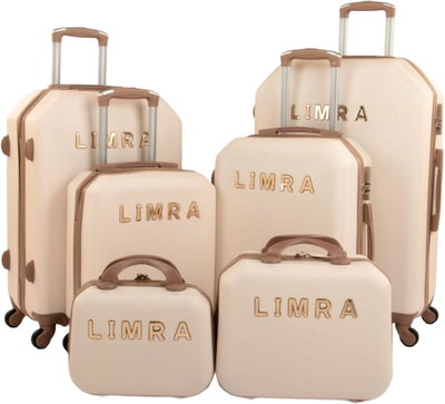 طقم شنط سفر ABS ليمرا، 6 مقاسات، 4 عجلات، زاويه 360 درجة، LMA-898 - بيج ذهبي