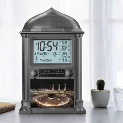 ساعة اذان رقمية الحرمين، 36.5×23.5 سم، منبه اذان - اسود