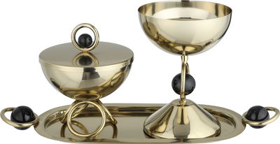 طقم مبخرة ستانلس استيل السيف غاليري، 27x14x1.8 سم، طوفرية بيضاوي، علبة بخور - ذهبي أسود