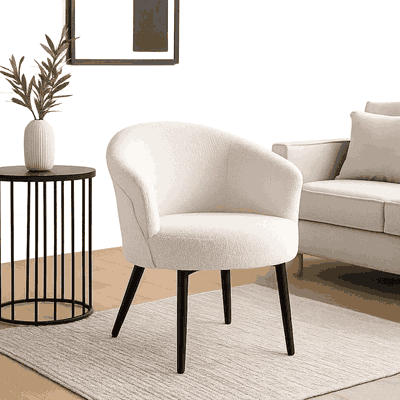 كرسي مودرن معدن، 80×47×57 سم، قماش بوكليه واسفنج - ابيض