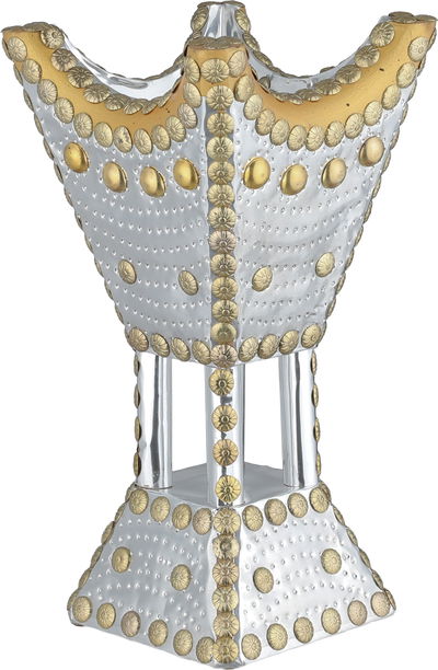 مبخرة باكستاني ستانلس استيل، 13x13x25 سم، قاعدة - فضي ذهبي