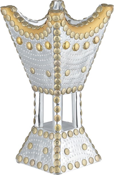 مبخرة باكستاني ستانلس استيل، 12x12x23 سم، قاعدة - فضي ذهبي