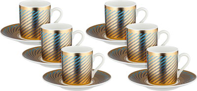 طقم فناجين قهوة تركي بورسلان السيف غاليري، 12 سم، 12 قطعة، صحون، مسكة يد - متعدد الألوان