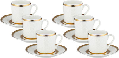 طقم فناجين قهوة تركي بورسلان السيف غاليري، 12 سم، 12 قطعة، صحون، مسكة يد - ذهبي أبيض