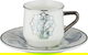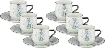 طقم فناجين قهوة تركي بورسلان السيف غاليري، 13 سم، 12 قطعة، صحون، مسكة يد - متعدد الألوان