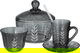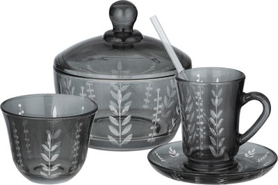 طقم تقديم بيالات فناجين سكرية زجاج السيف غاليري، 11 سم، 26 قطعة، مشجر - أسود شفاف