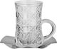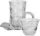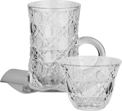 طقم تقديم فناجين وبيالات زجاج، 18 قطعة، صحون استيل، 12 سم - شفاف فضي