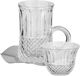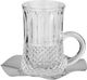 طقم تقديم فناجين وبيالات زجاج، 18 قطعة، صحون استيل، 12 سم - شفاف فضي