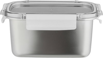 علبة تخزين ستانلس استيل الصحاح، 19x12x10 سم، غطاء بلاستيك، قفل - فضي شفاف