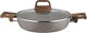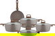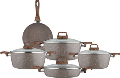 طقم قدور جرانيت روكي، 9 قطع، مسكة يد خشبي، غطاء زجاج - بني