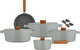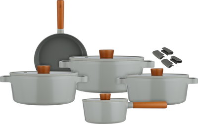 طقم قدور ستانلس استيل نيوفلام فيكا، 9 قطع، غطاء زجاج، مسكات يد إضافية - رمادي خشبي