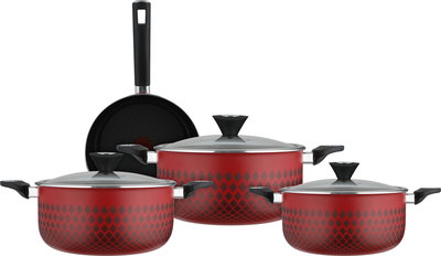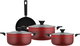 طقم قدور تيفال رد فلام، 7 قطع، غطاء زجاج - أحمر أسود