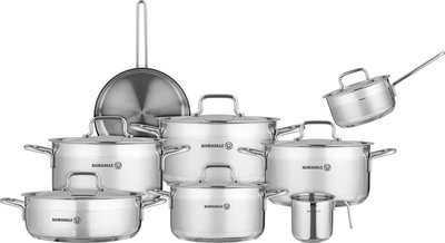طقم قدور ستانلس استيل كوركماز الفا، 14 قطعة - فضي