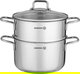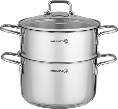 قدر مزدوج ستانلس ستيل كوركماز بيرلا، 20 سم، غطاء زجاج - فضي