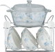 طقم تقديم شوربة زجاج جولدن غاليري، 16 قطعة، صحون بورسلان - أبيض سماوي