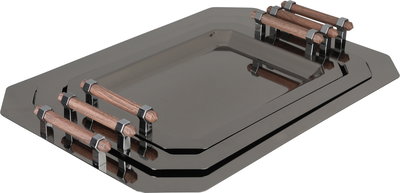 طقم طوفريات ستانلس استيل السيف غاليري، 3 قطع، مستطيل، يد خشبي- أسود لامع