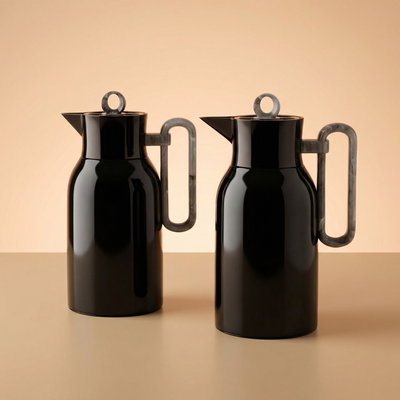 طقم ترامس الدرة السيف غاليري، 1 / 1 لتر، 2 قطعة، حافظة داخلية زجاج، ضغاط، مسكة يد رمادي رخامي - أسود لامع