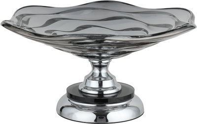 ستاتد تقديم ستانلس ستيل زجاج السيف غاليري، قاعدة دائرية، 35x35x17 سم - فضي اسود