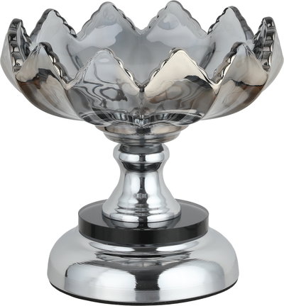 ستاتد تقديم ستانلس ستيل زجاج السيف غاليري، دائري، قاعدة فضي، 15x15x14 سم - فضي شفاف