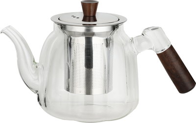 ابريق شاي مع مصفاة ستانلس ستيل زجاج السيف غاليري، يد خشبي غامق - فضي شفاف
