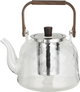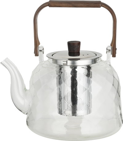 ابريق شاي مع مصفاة ستانلس ستيل زجاج السيف غاليري، يد خشبي غامق - فضي شفاف