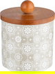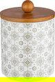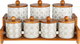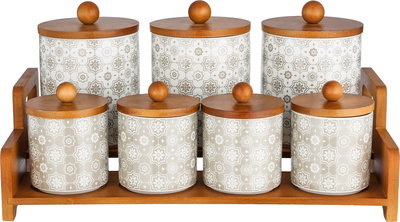 طقم علب بهارات مع استاند خشب بورسلان ون مور, 7 قطع، نقش بيج - ابيض خشبي